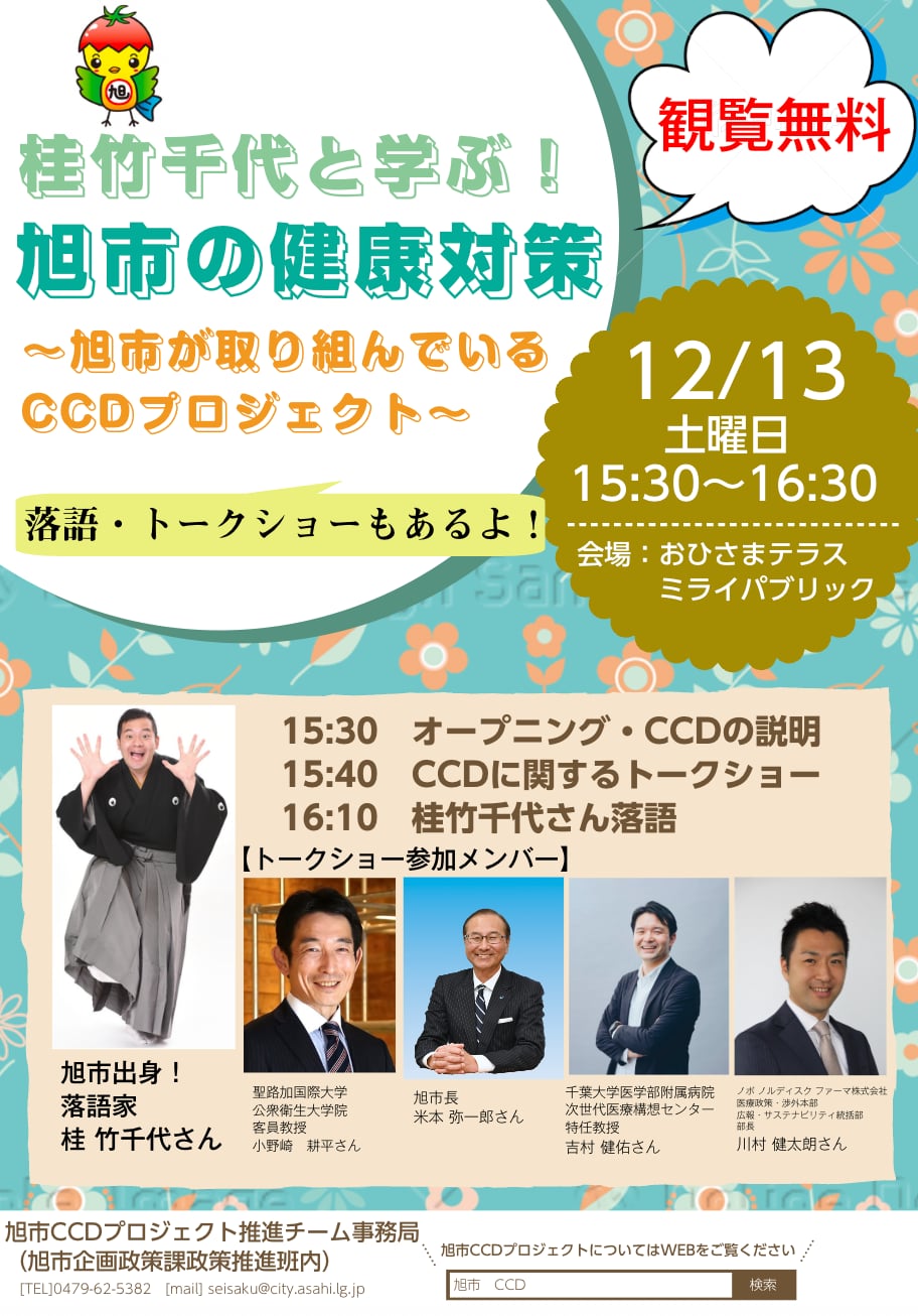 12月13日(土) 桂竹千代と学ぶ!旭市の健康対策~旭市が取り組んでいるCCDプロジェクト~